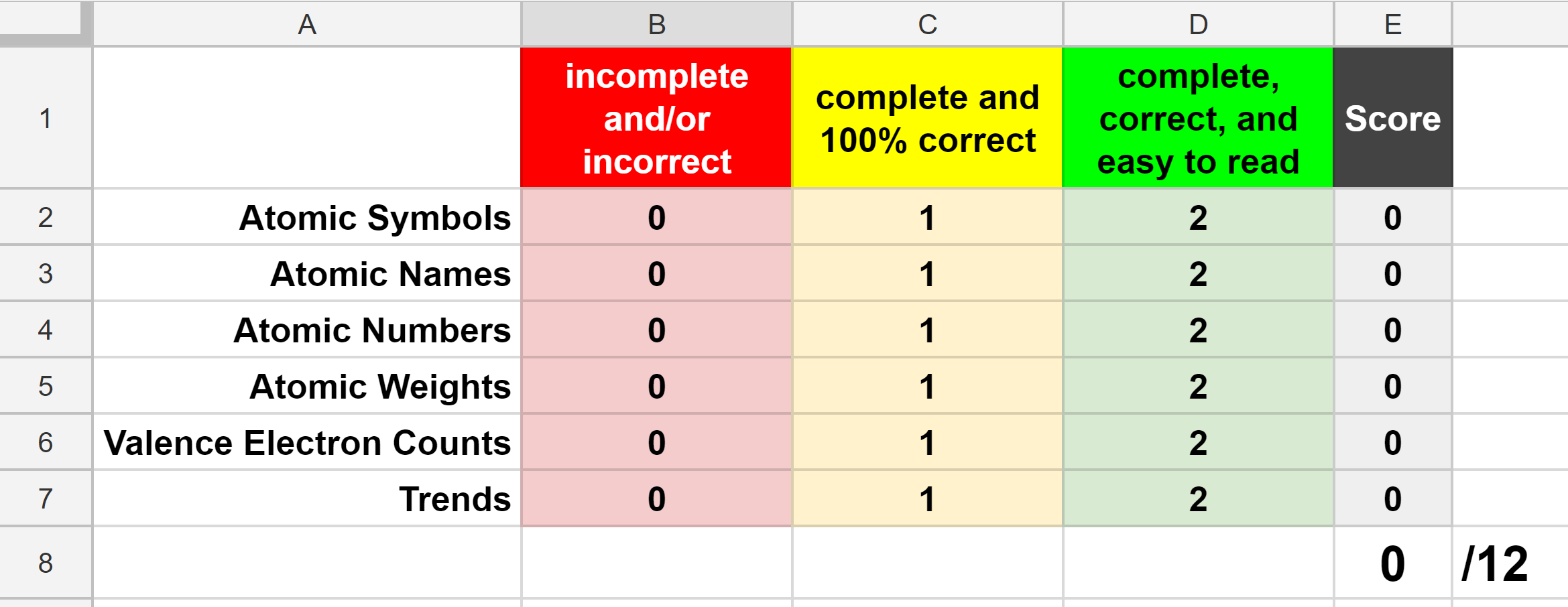 Now that your table is complete, it is time to treat it as a prototype ready for testing. Use the criteria I provided earlier to construct a rubric with three tiers of possibility: