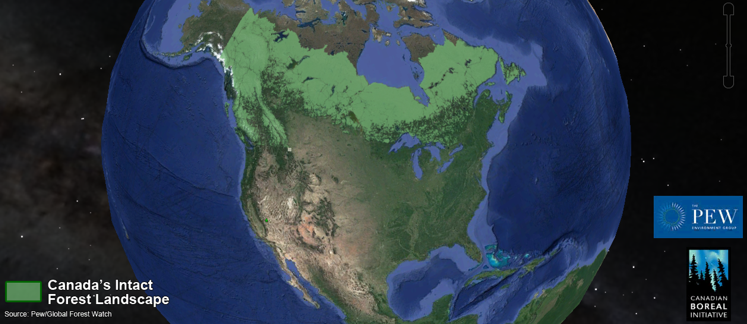 Today we're going to learn how to add legends, logos, and banners in Google Earth. To do this you will first have to download a .kml file of the Canadian Boreal Forest, a PEW Group project with a lot of good data in it. You can also use Google's key for this project, which shows the percentage of this forest covered by wetlands. You will also need the data showing actual wetlands coverage to launch in Google Earth as well.